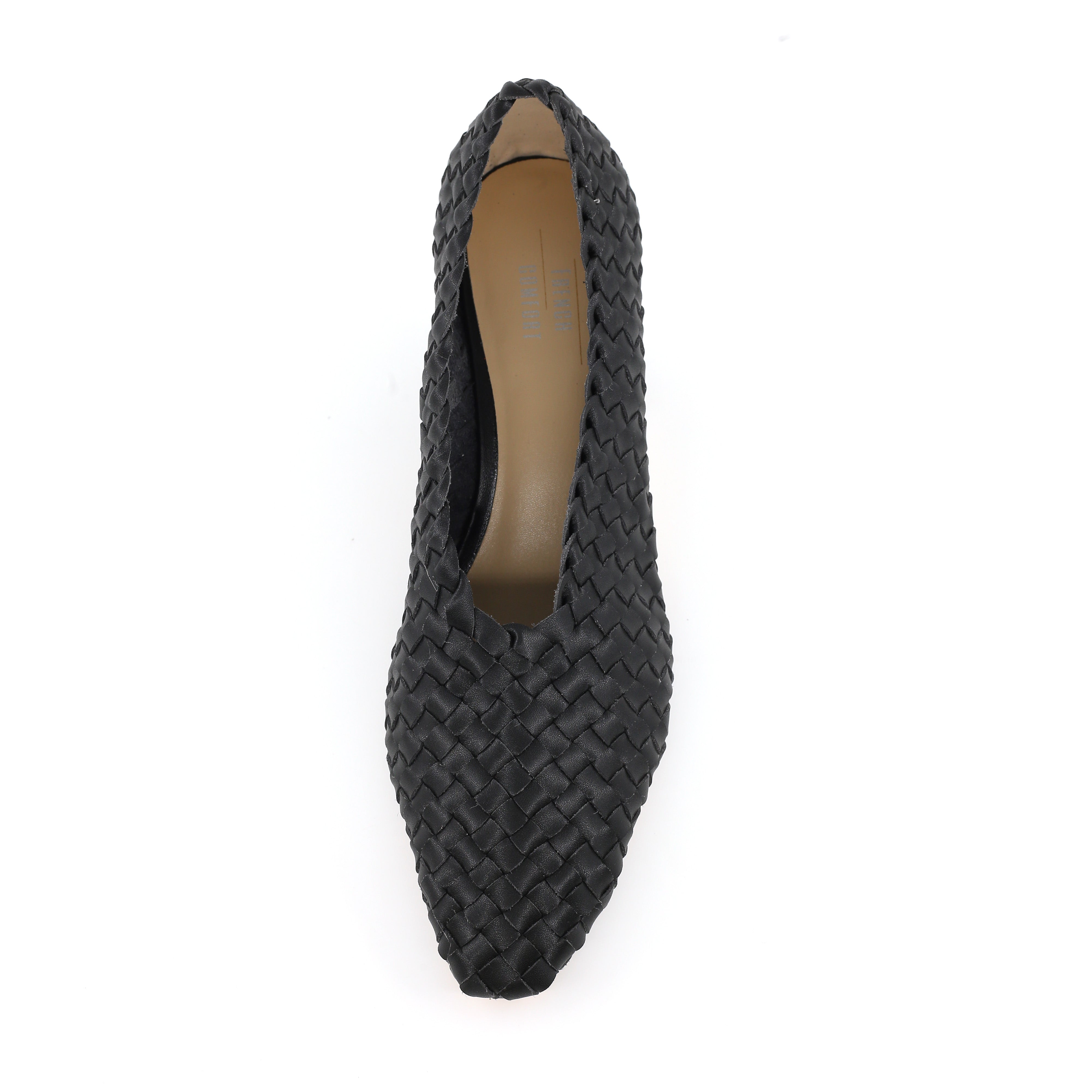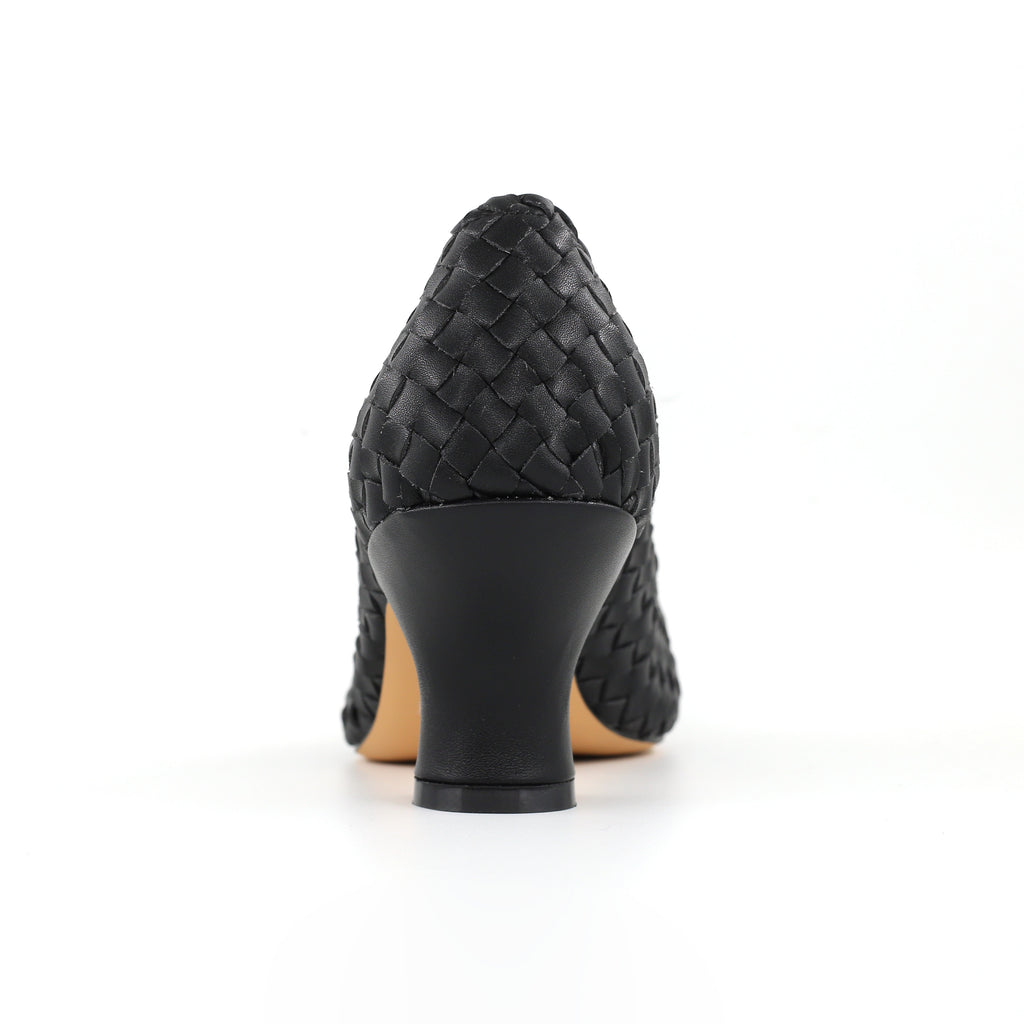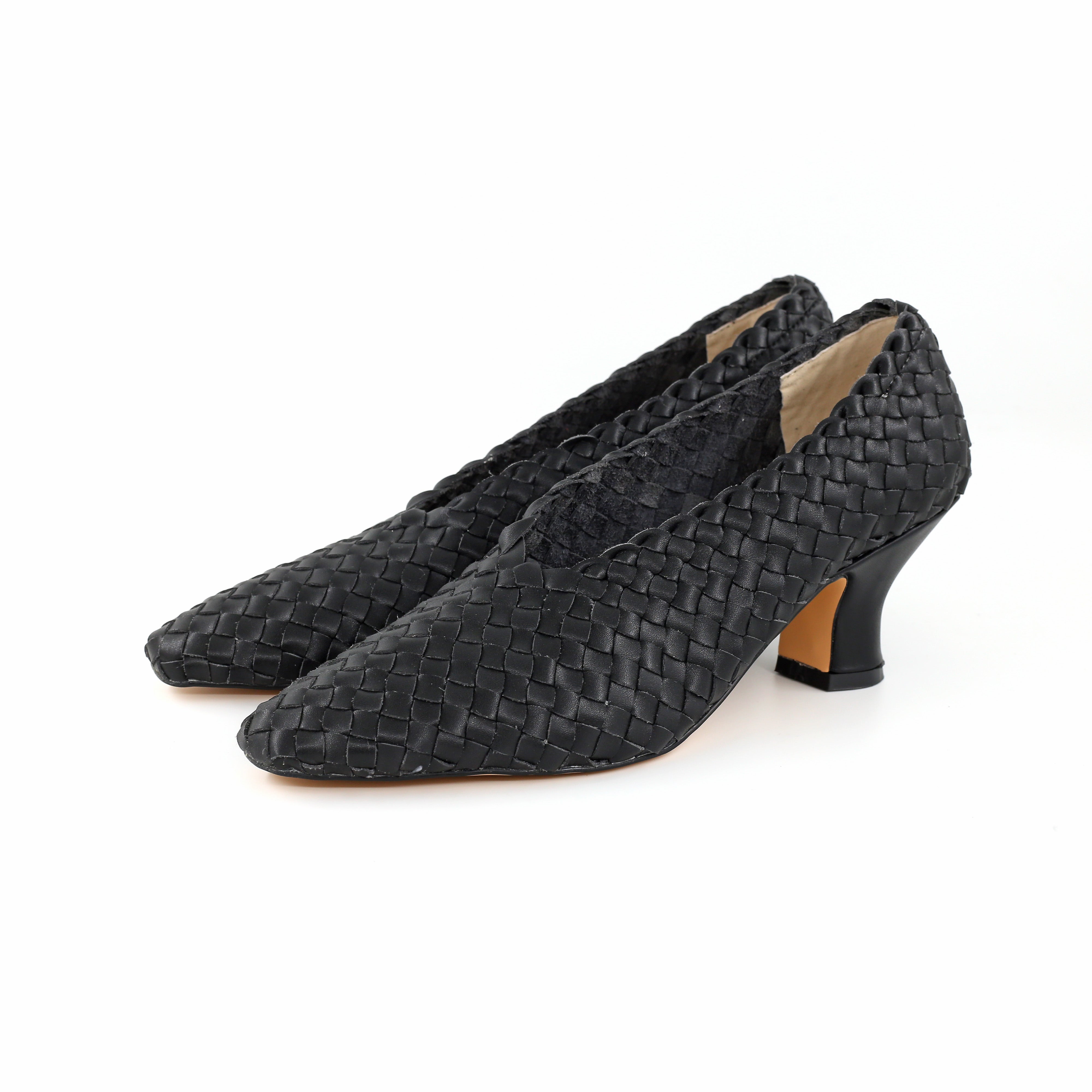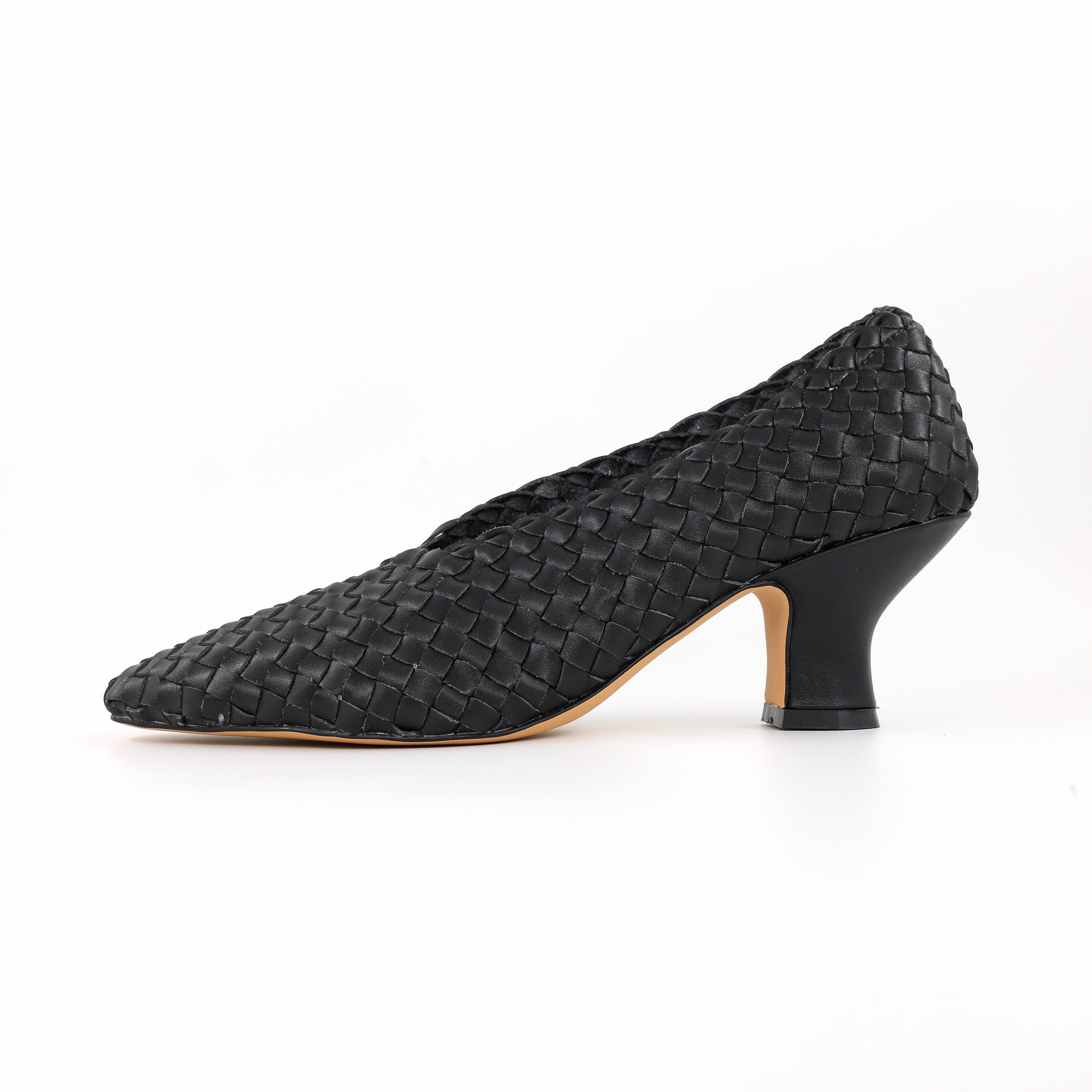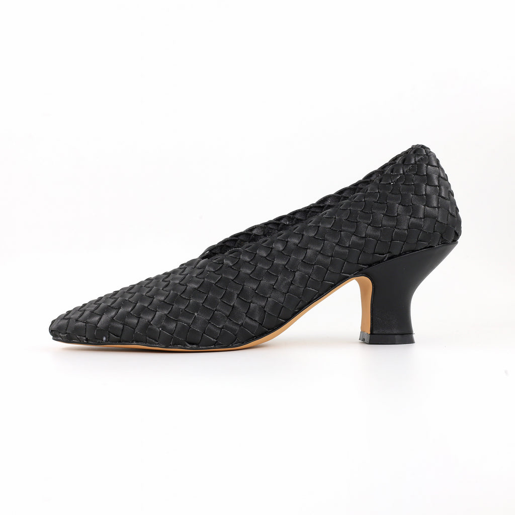 The Shelly pump is an exquisite update to the classic court shoe, defined by its rich, full-coverage woven texture. The tightly braided upper material provides beautiful dimension and a refined artisanal look, perfect for elevated workwear or chic daytime events.