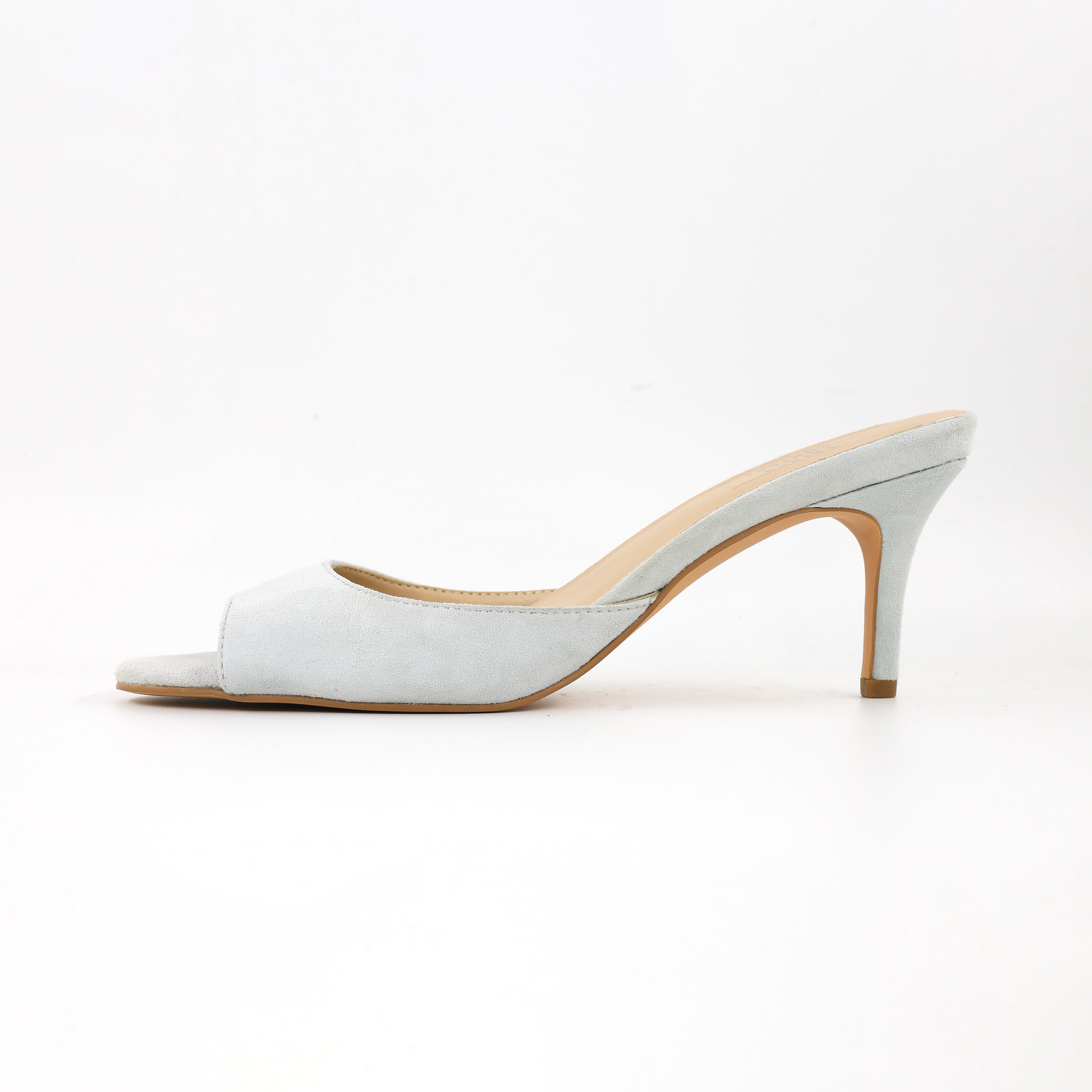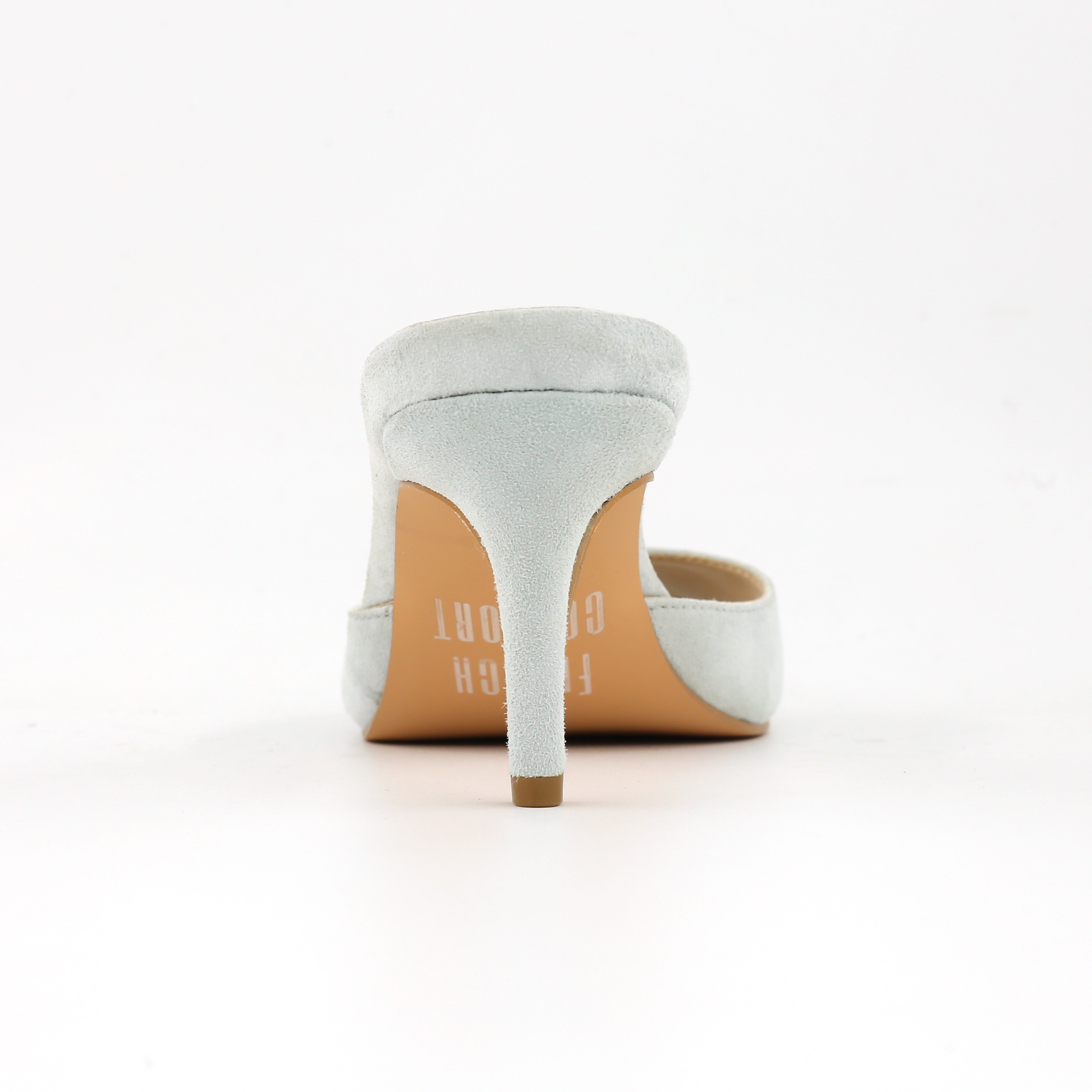 Whether chosen in classic Black suede or the luminous Pale Blue shimmer, this mule delivers a polished finish. It is the perfect choice for transitioning effortlessly from a professional setting to an elegant evening out.