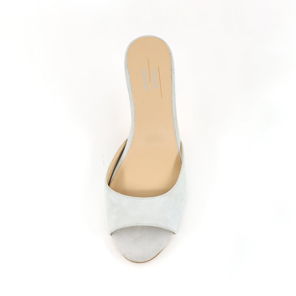 The Tiana is a deeply sophisticated mule designed for graceful movement and effortless evening elegance. Crafted from beautiful, plush suede, this slip-on heel features a slender peep-toe opening and a subtly curved vamp that flatters the foot.