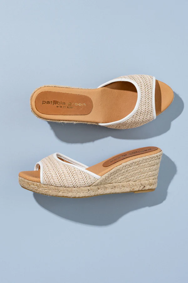 Handcrafted in Spain in small artisan-led batches, the Sienna Espadrille is a beautifully refined slide designed for effortless warm-weather elegance. The woven upper adds soft texture and natural charm, while the open-toe silhouette keeps the look light and versatile. Set on a handwoven jute wedge with a cushioned footbed, Sienna offers flattering lift with all-day comfort. Chic, easy, and endlessly wearable, it’s a timeless Patricia Green essential—perfect for sunny afternoons, seaside escapes, and everything in between.
