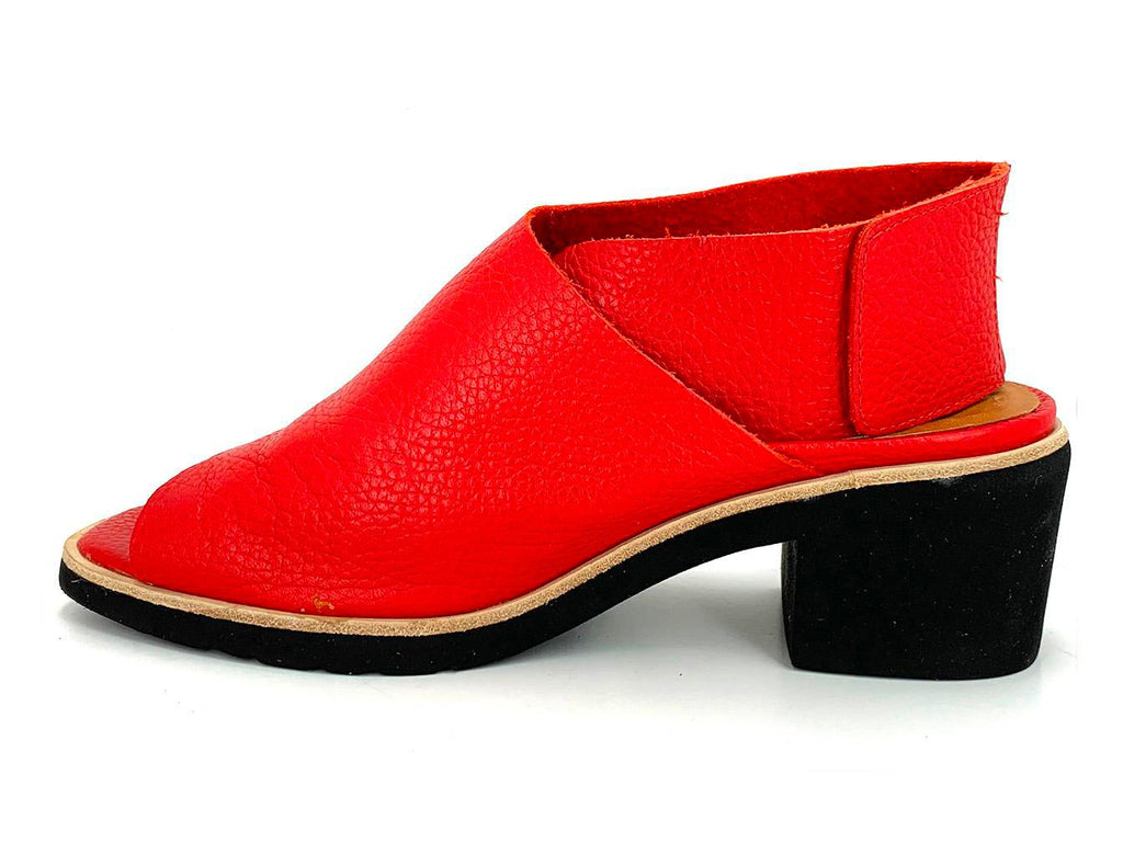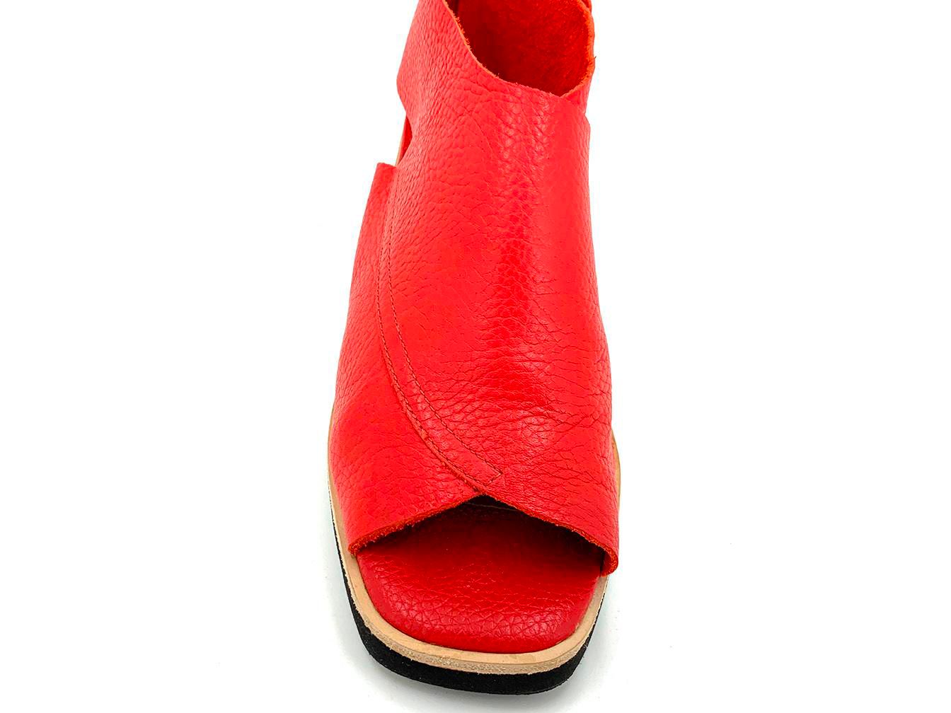 Elevate your everyday look with the Qiana, a modern open-toe sandal from the comfort-focused designers at L'Amour Des Pieds. Crafted from premium, tumbled leather in a vibrant poppy red, this shoe delivers both striking style and exceptional wearability. The chic, bootie-like upper features clean, folded edges and contrast stitching, setting a modern tone.