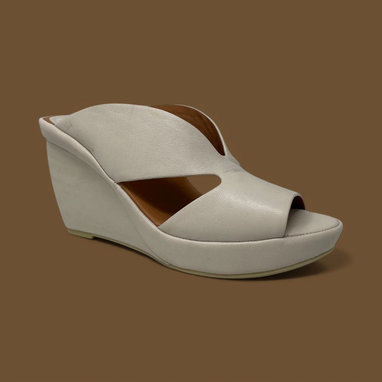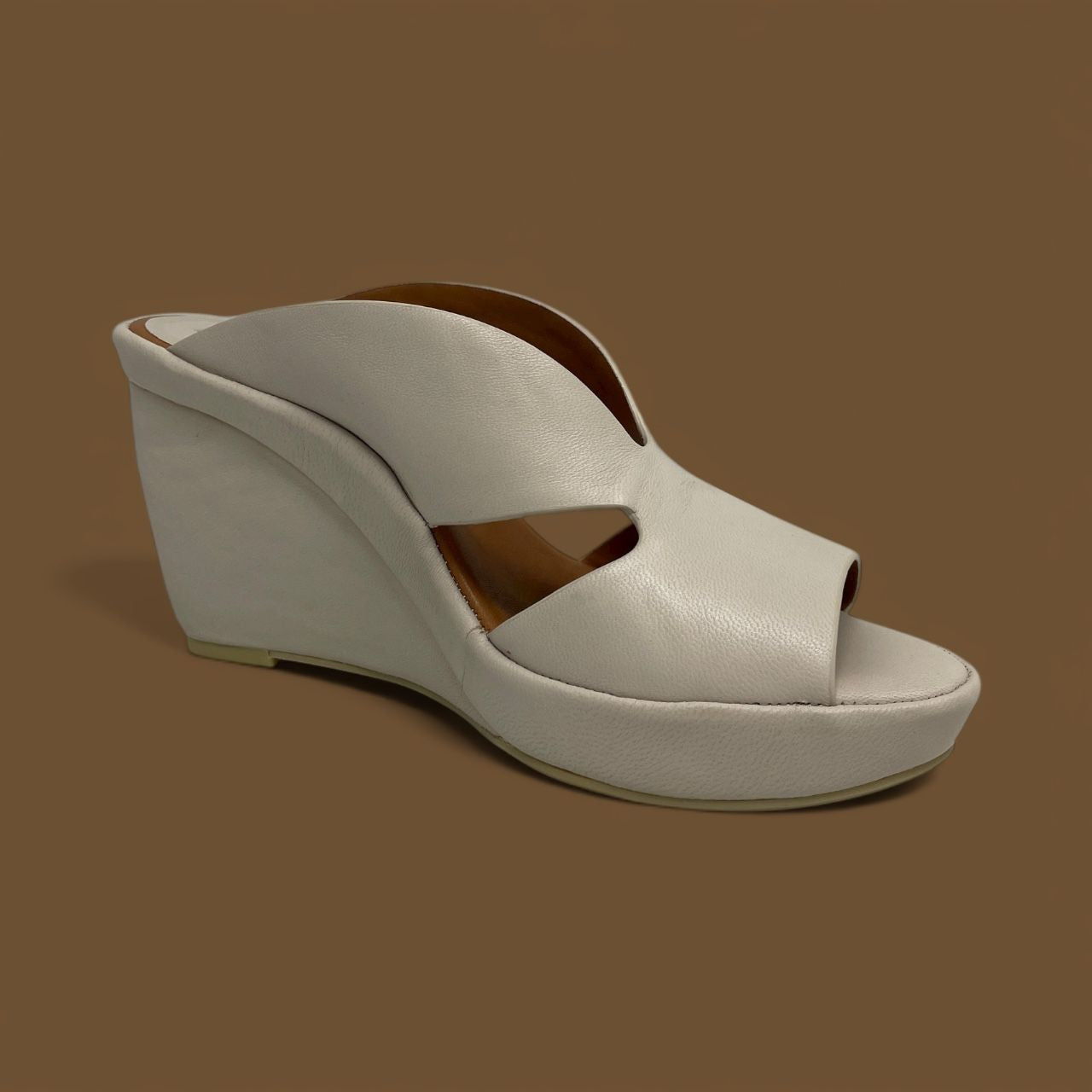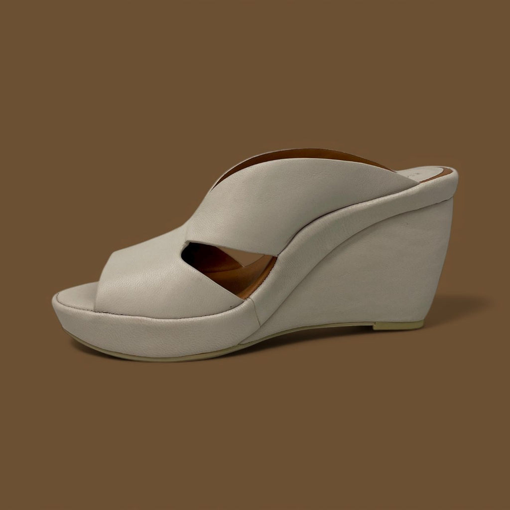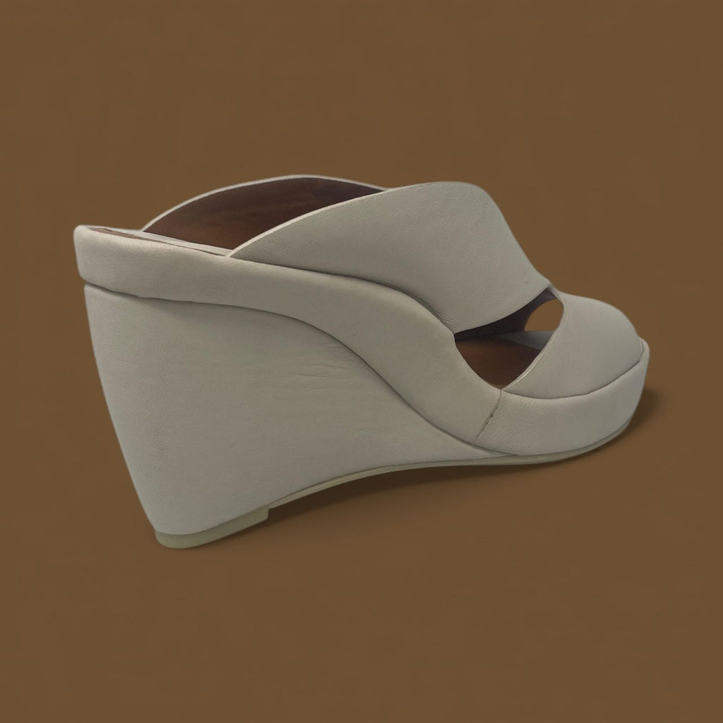This chic peep-toe wedge slide is crafted from a smooth, supple cream-toned leather, featuring a stylishly sculpted, crossover upper that cradles your foot. The integrated platform and wedge heel offer a statuesque lift while maintaining stability and ease of wear. Designed with the brand’s signature comfort technology, it ensures a cushioned stride and flexible support from day to night. Perfect for elevating any ensemble, from a garden party dress to tailored wide-leg trousers.