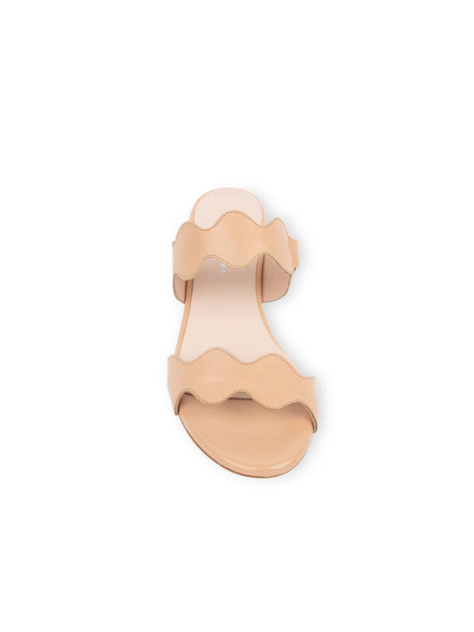 Our most iconic, best-selling sandal we've designed to date. Feminine scalloped straps and a covered block heel define a Spanish slide sandal made with a comfortably cushioned footbed. Our customers rave about how comfortable and easy to wear these sandals are, we love the study block heel and easy walkability.