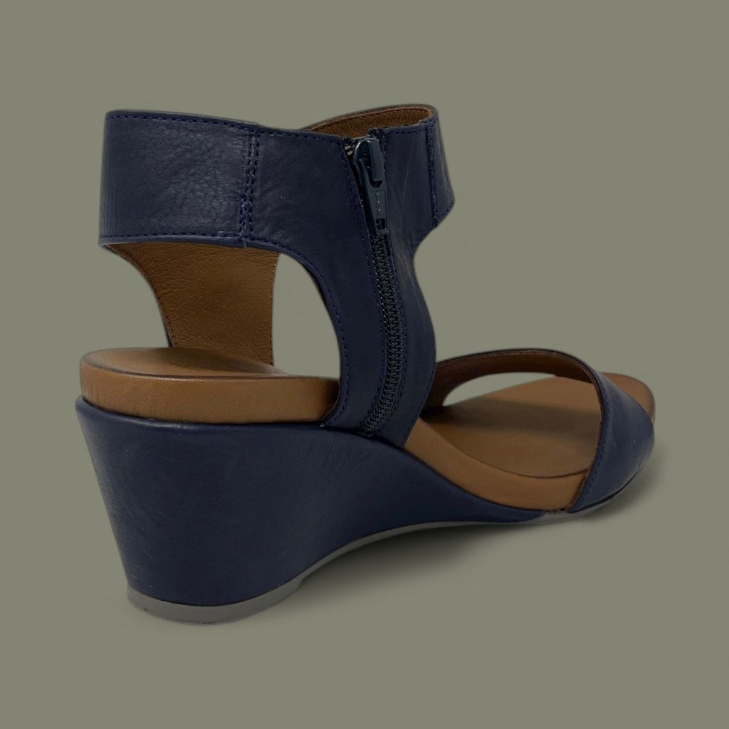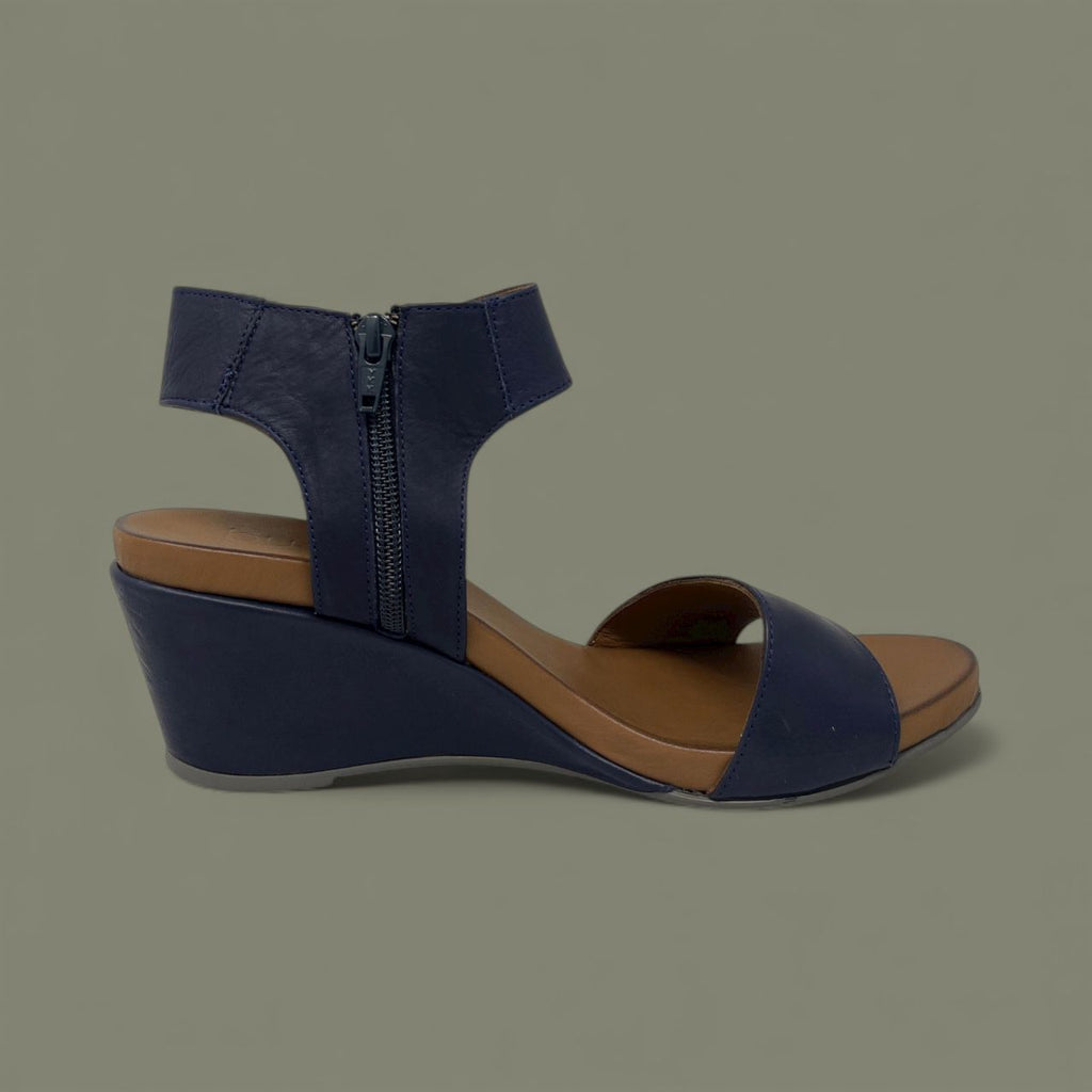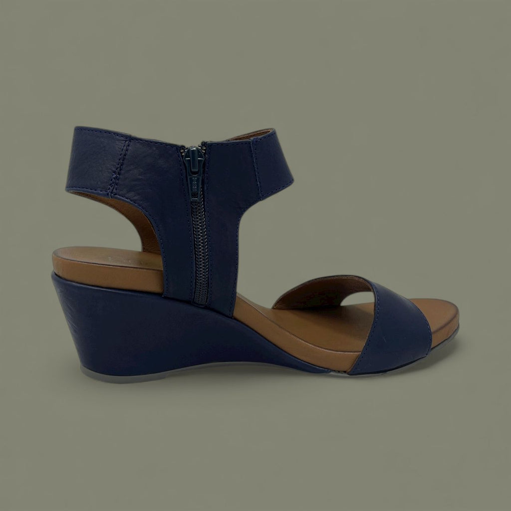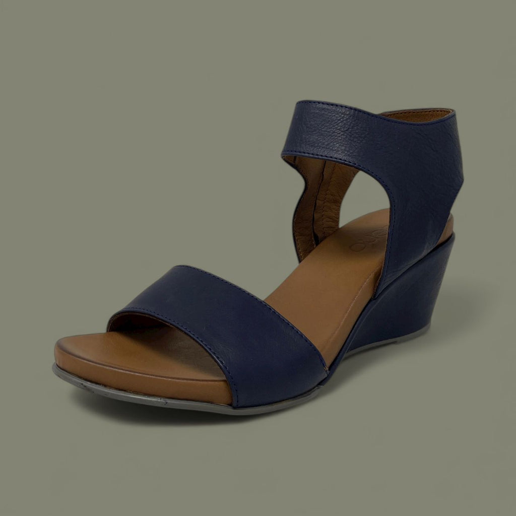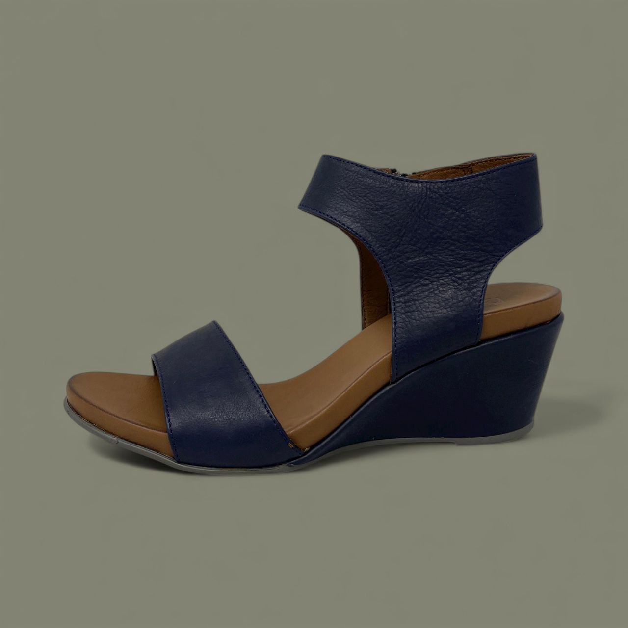 Step into the Ida wedge sandal from Bueno, a chic two-piece design that blends contemporary style with essential comfort. Crafted from premium, supple navy leather, the minimalist toe strap and wide ankle cuff create a sophisticated, modern silhouette that instantly elevates your warm-weather wardrobe.