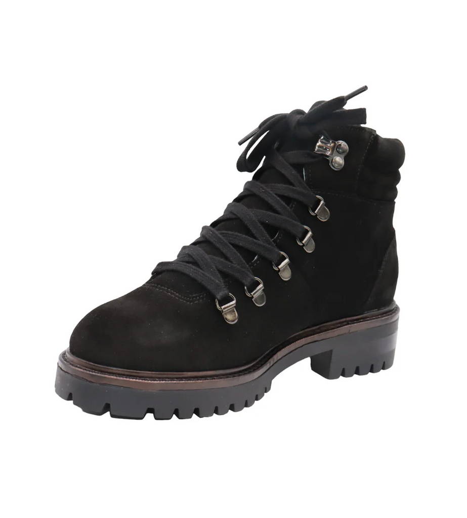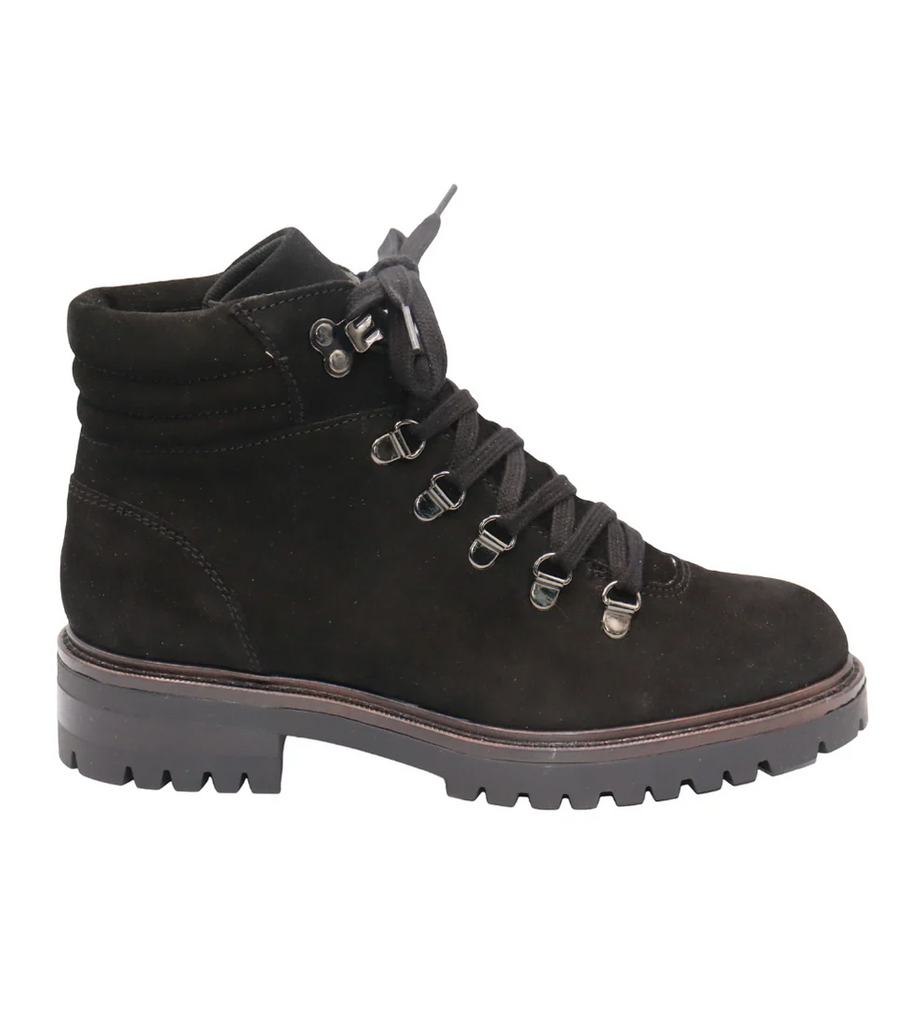 The Eric Michael Canyon is a women’s leather lace-up boot made for everyday adventure. A smooth leather upper and leather lining break in quickly, and a cushioned insole supports long wear. The rubber outsole grips city streets and weekend trails. An easy lace-up front dials in the fit, and the low heel keeps your stride stable. Canyon pairs with denim, leggings, and casual dresses for a rugged but refined look.