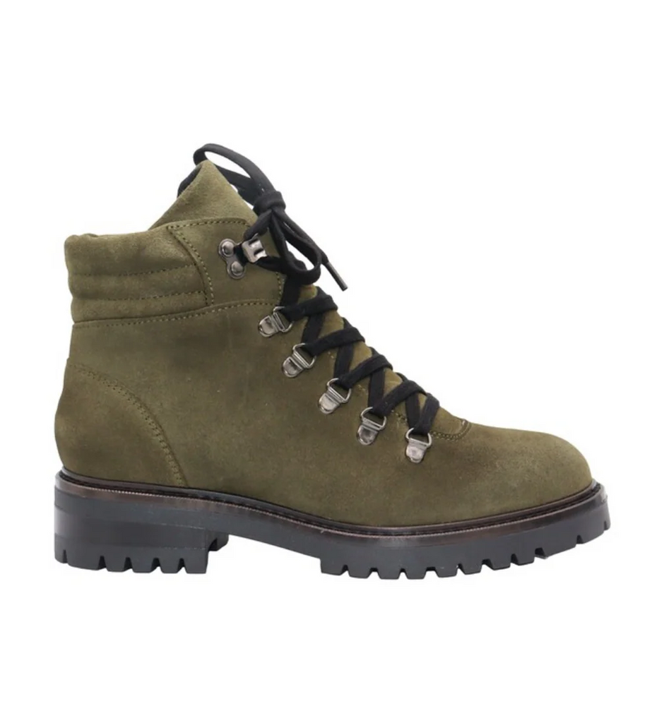 The Eric Michael Canyon is a women’s leather lace-up boot made for everyday adventure. A smooth leather upper and leather lining break in quickly, and a cushioned insole supports long wear. The rubber outsole grips city streets and weekend trails. An easy lace-up front dials in the fit, and the low heel keeps your stride stable. Canyon pairs with denim, leggings, and casual dresses for a rugged but refined look.