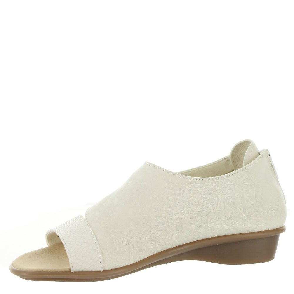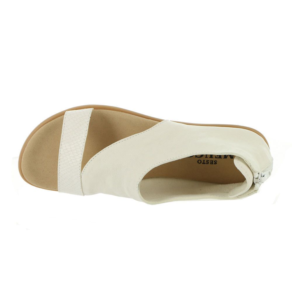 This chic sandal-bootie hybrid from Sesto Meucci is designed for the modern woman who prioritizes both style and comfort. The upper is crafted from sumptuously soft, ivory or bone-colored leather, featuring a smooth finish for the main body and a subtly embossed snakeskin texture on the peep-toe band for a touch of exotic elegance. The upper wraps around the foot with a crisscross design that offers stylish coverage and a secure fit. The shoe rests on a low, integrated comfort wedge with a natural-toned sole, providing stable height and gentle elevation. With a cushioned insole and Italian-influenced design, this peep-toe is an ideal choice for transitioning seasons, pairing effortlessly with both dresses and cropped trousers.