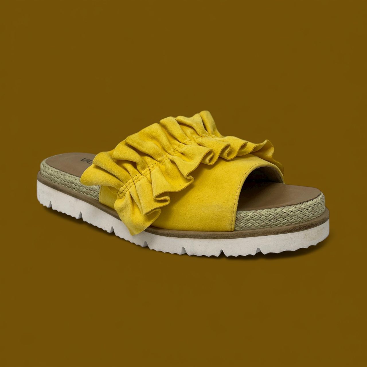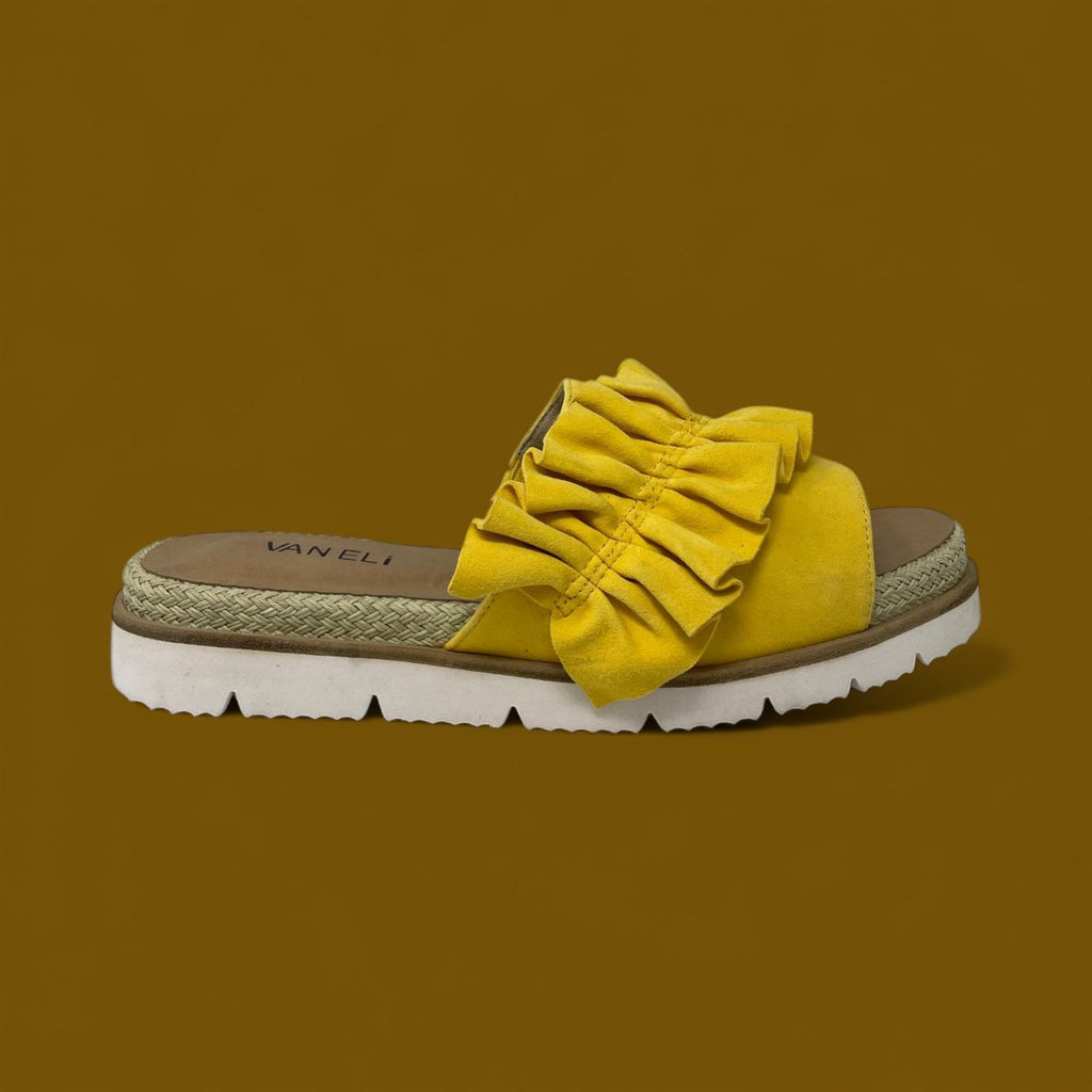 VANELI - YELLOW RUFFLE PLATFORM SLIDE - SIZE 8 - YELLOW
